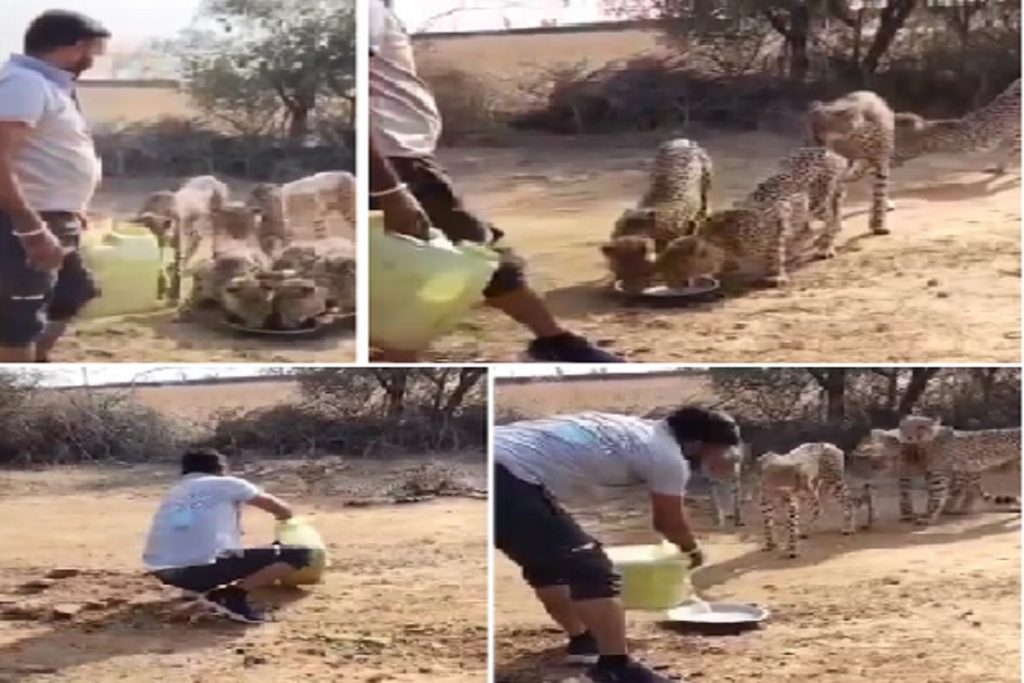 सोशल मीडिया पर वायरल हो रहे वीडियो में इंसान और चीतों का अनोखा रिश्ता साफ नजर आ रहा है। वीडियो में दिखाई दे रहा है कि चीता मित्र सत्तू गुर्जर हाथ में परात और एक पानी की केन लेकर आता है। वह केन से परात में पानी भरता है और शिकार के बाद पेड़ के नीचे बैठकर अपने शवकों के साथ आराम कर रही ज्वाला को आवाज देता है।
