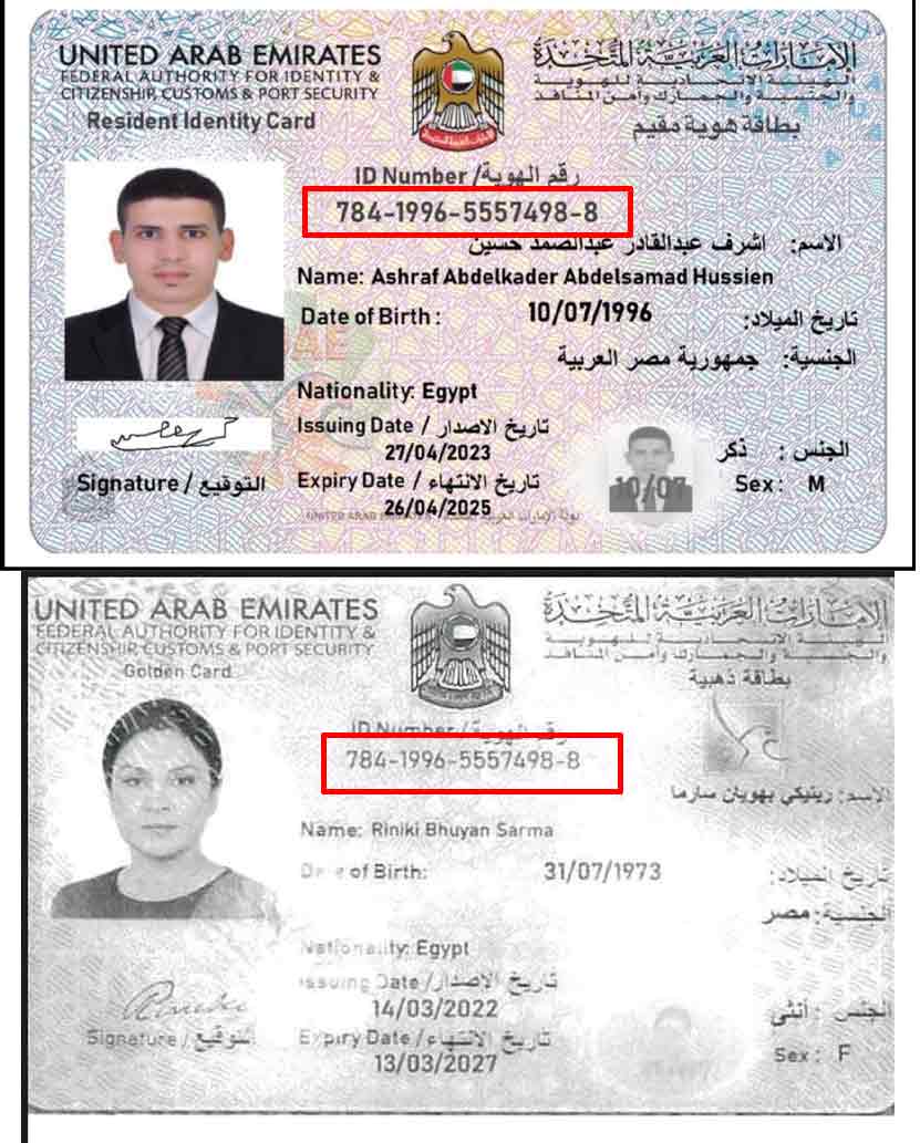विशेषज्ञों के अनुसार, यूएई का एमिरेट्स आईडी नंबर 15 अंकों का एक यूनिक नंबर होता है, जो किसी व्यक्ति के बायोमेट्रिक रिकॉर्ड से जुड़ा होता है और कभी बदलता नहीं है। अलग-अलग दस्तावेज़ों में एक ही नंबर का इस्तेमाल संभव नहीं है, जिससे यह स्पष्ट होता है कि दस्तावेज़ फर्जी तरीके से तैयार किया गया।